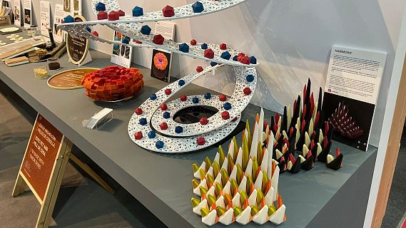 A la Fira de Barcelona, ha arrencat el Gastronomic Forum, una cita amb l'alta cuina del territori, que enguany posa el focus en els productes gurmet i la filosofia sostenible. Entre les innovacions que s'hi presenten destaquen els canelons d'heura, croquetes braves amb gust picant, o un gelat vegà d'oli d'oliva | MAITE BOADA