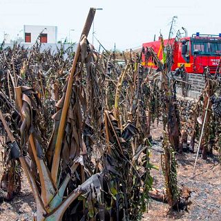 El volcán pone en jaque el oro de La Palma: sus plataneras