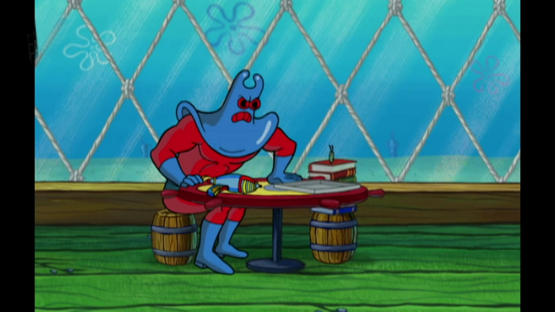 Calamardo se obsesiona con una máquina de juegos que el Sr. Cangrejo ha puesto en la hamburguesería