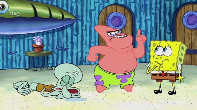 Calamardo gasta una broma a Patricio y Bob Esponja para que no hagan ruido y lo que consigue es enemistarlos