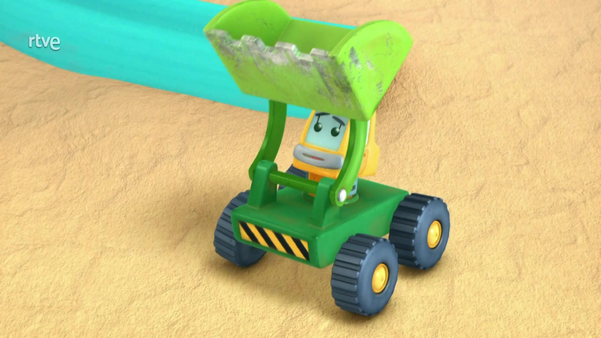 Donny y su amigo juegan en la arena, pero el juguete de Will, la excavadora, se ha atascado.