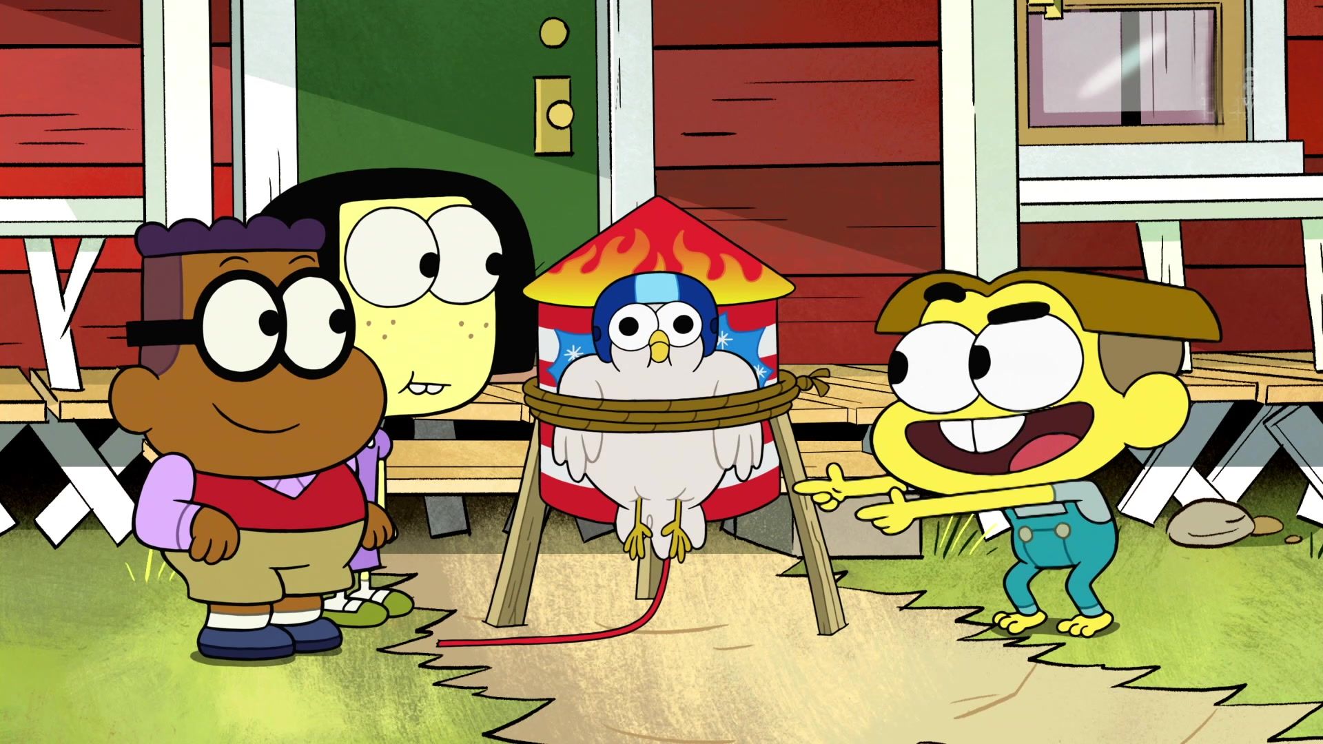 Para impresionar a sus nuevos vecinos, Cricket intenta lanzar una gallina al espacio.