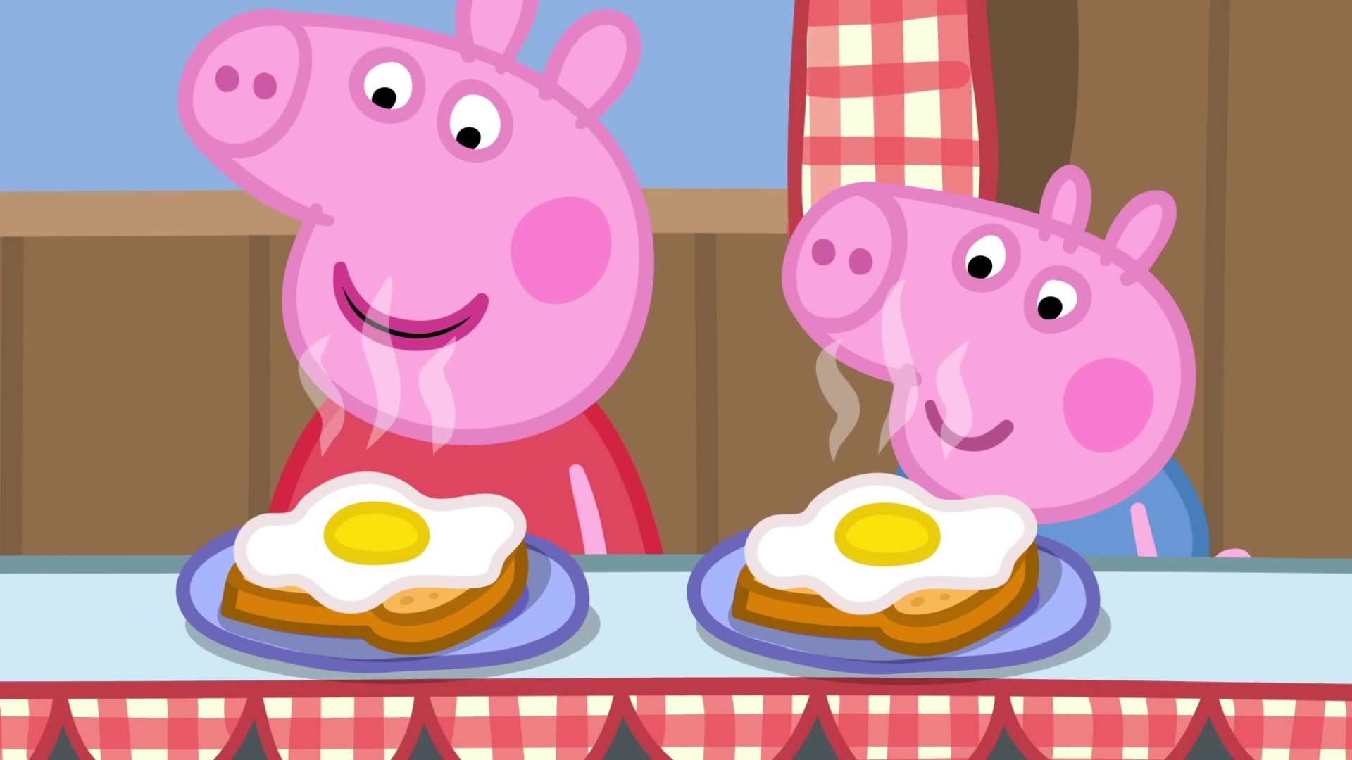 Mamá Pig ha preparado un pastel de manzana y Peppa y George van a esperar delante del horno hasta que se haga para poder comerlo. Papá Pig les...