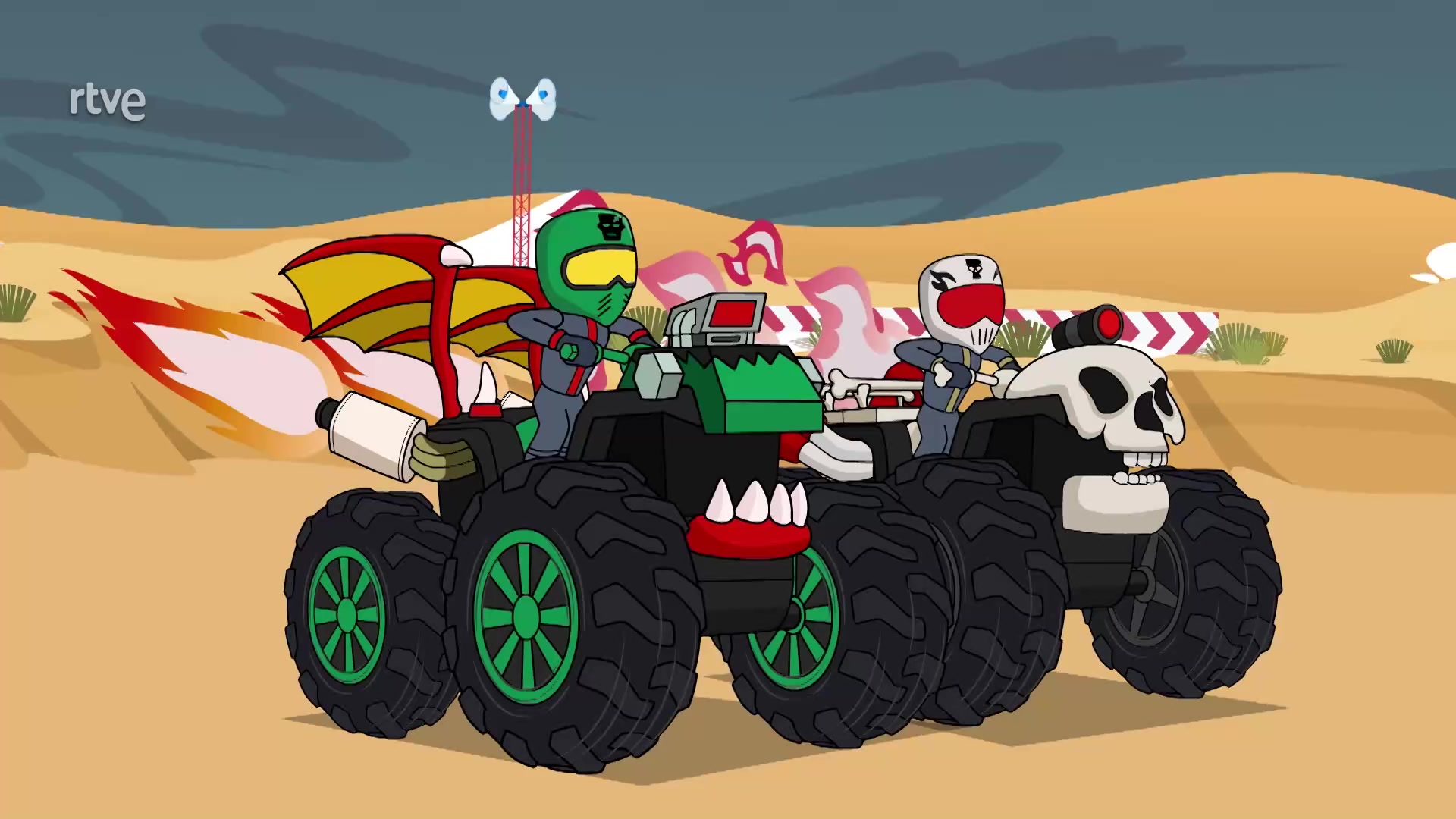 Cuando parece que se ha visto de todo en la competición, llegan los Swap Riders encima de un dinosaurio gigante.