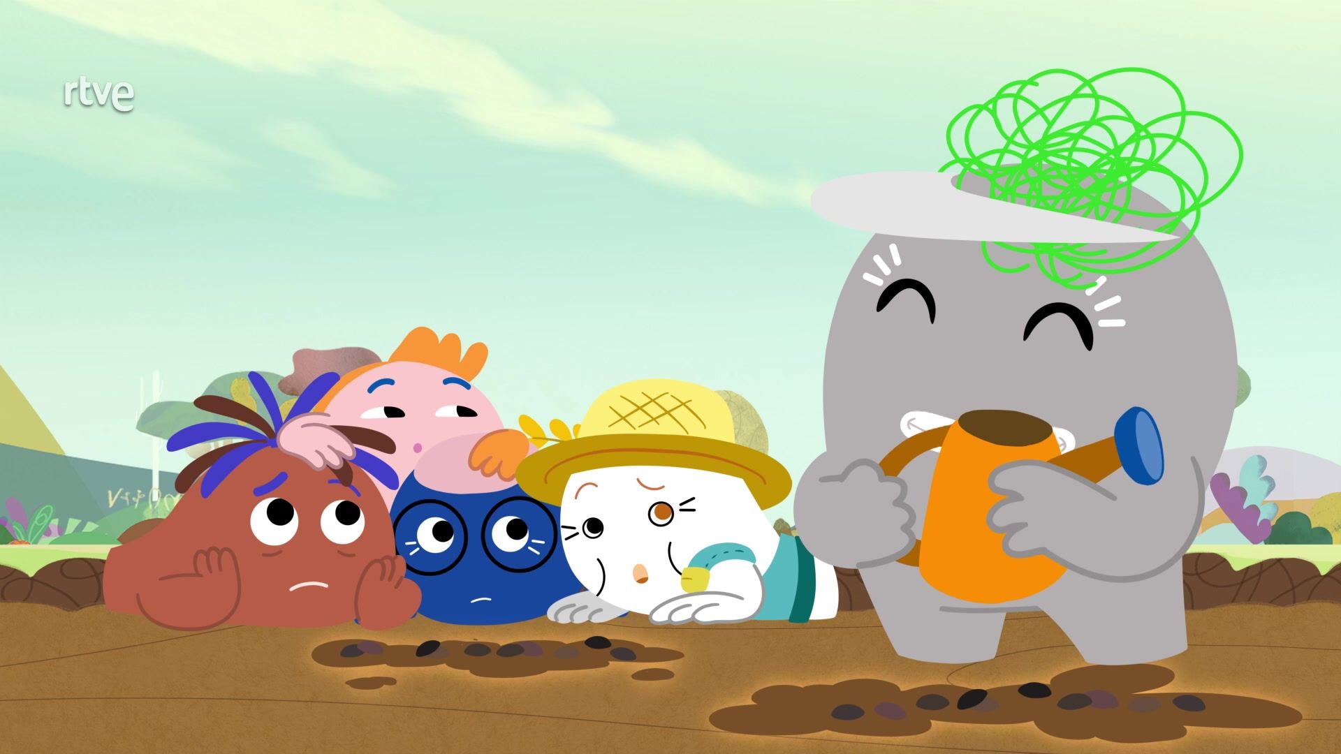 Sha ve lo bien un grupo de niños en su propio huerto y anima a los Wawies a cuidar del huerto de Wawaland.