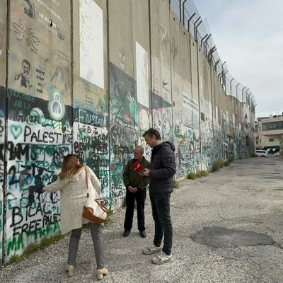 <p>La enviada especial de RNE, Cristina Sánchez, charla cerca del muro de Belén, junto a uno de los asentamientos israelíes, con ...