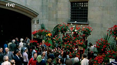 Reportaje 'El día de San Jorge', realizado por Francesc Rovira Beleta. Paradas de rosas en la calle y, en la jornada de puertas abiertas, amplio recorrido por las dependencias del Palau de la...