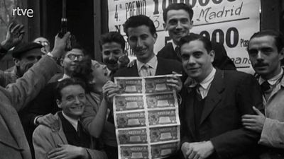 El sorteo de la lotería de Navidad de 1943 congrega a cientos de barceloneses frente a una administración en la Rambla, que van tomando nota de los números. Algunos de los nuevos millonarios celebran...