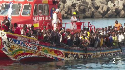 Son imágenes del último cayuco que ha llegado a Canaria. Lo hacía esta mañana al sur de Tenerife con 33 personas, entre ellos varios menores. Supervivientes de un ruta, la ruta canaria, de las más...