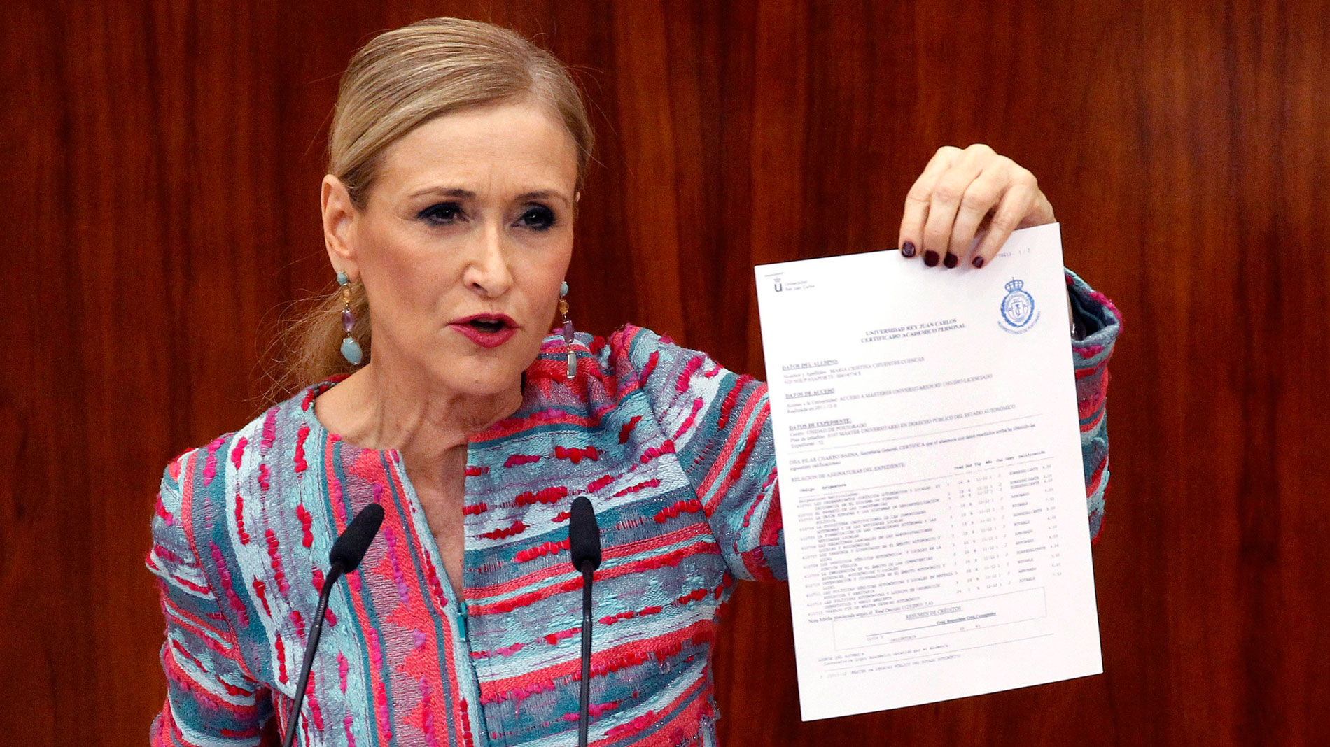 Cifuentes: "El título es perfectamente real y legal. Ni mi currículum ni mis calificaciones han sido falseadas"