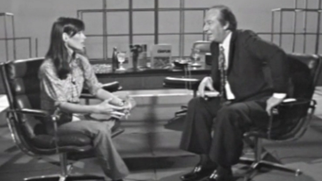Joaquín Soler Serrano entrevista a la actriz Geraldine Chaplin, el escultor Xavier Corberó y el periodista Néstor Luján.