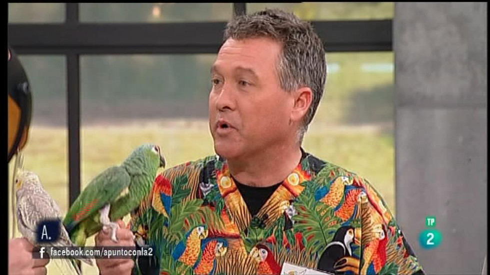 El veterinario Javier Vergés, de la clínica Exotics, muestra cómo tratar con loros en casa.