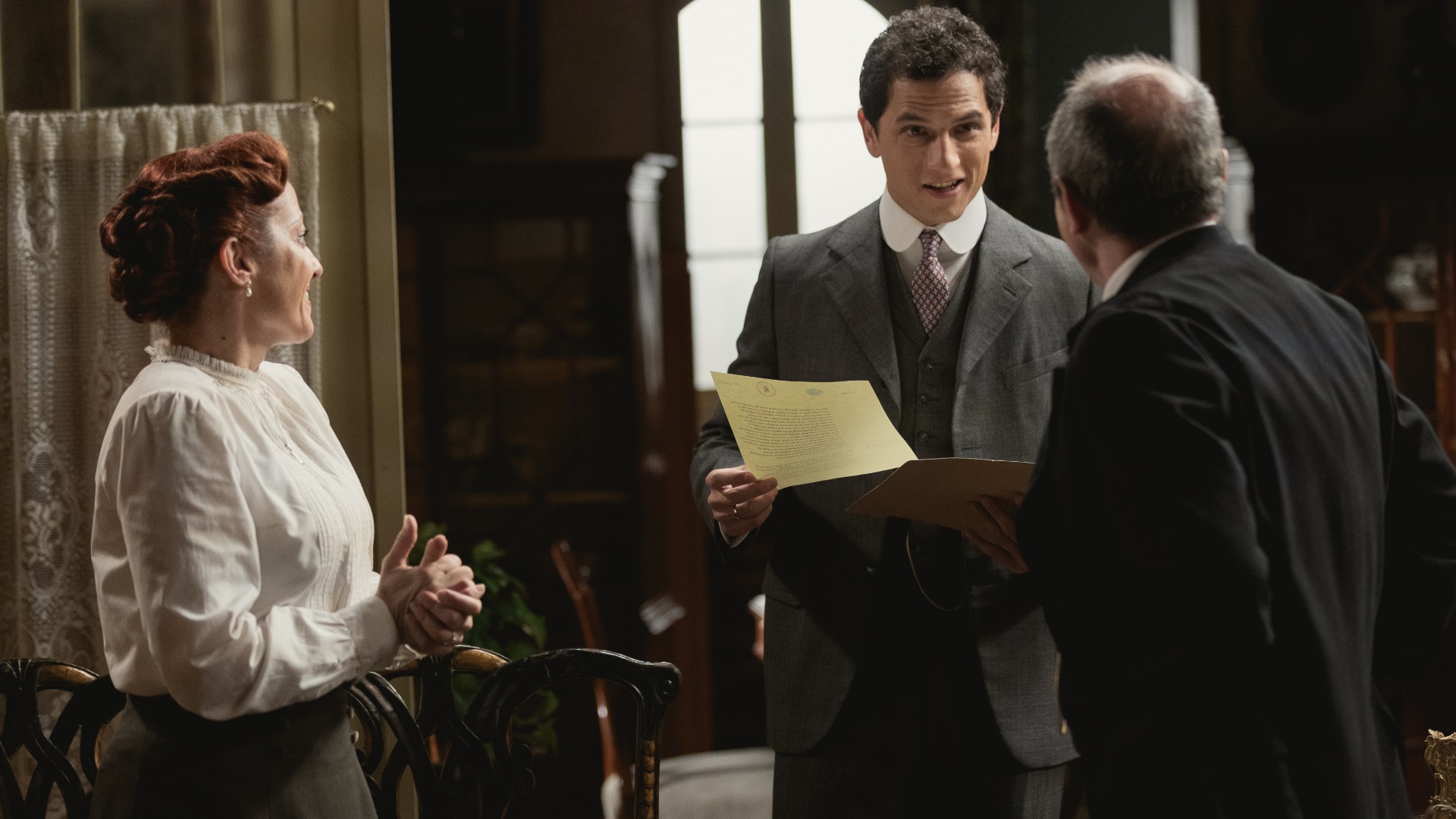 Antoñito anuncia a Lolita que han recomprado la mantequería y ella emocionada lo pregona por todo el barrio.