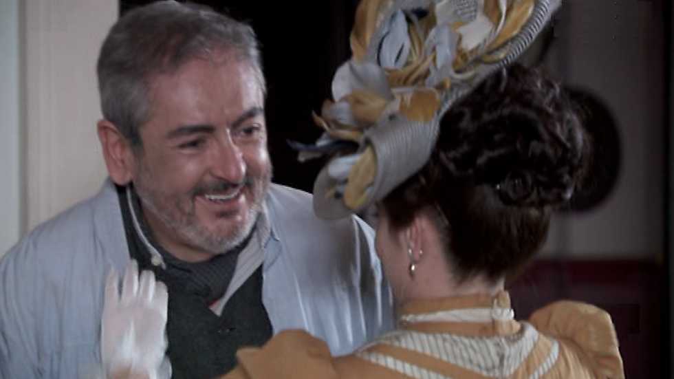 Tras un momento de duda, Cayetana decide celebrar la cita con Somoza en casa y ponerse el vestido que le regaló. Cayetana y el Duque se besan....