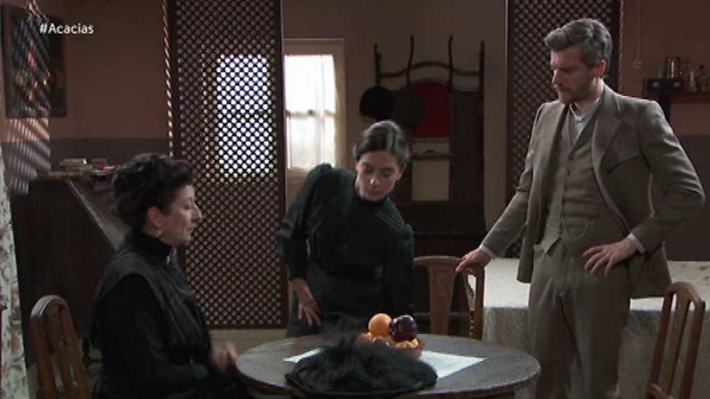 28/07/2017 00:54:33Trini ayuda a una insegura Lolita a prepararse para la cita con Antoñito. Adela confiesa a Simón que no se siente preparada para ver a Carlos. Susana toma cartas en el asunto y hace gestiones para que Adela regrese al convento y se aleje de Simón. Arturo reclama a Antoñito sus beneficios. El joven intenta tranquilizar al coronel, pero no es fácil, le da un plazo de un día para ver el dinero. Mauro le dice a Úrsula que Teresa va a revelar su identidad. Úrsula les pide tiempo, pero Mauro desoye el consejo; ya no pueden esperar más, Cayetana esta vez no se puede escapar. Cayetana intenta conseguir el favor de los señores, volviendo a culpar a Úrsula de todos los males de los que se le acusan. Teresa, antes de revelar su identidad, habla con Fabiana; le confiesa que sabe que es madre de Cayetana.