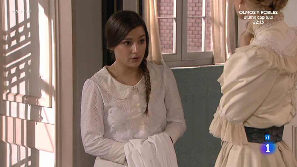 Cayetana y Manuela se encuentran en el portal y Justo tiene que ir a defender a su esposa, pues la señora De la Serna no para de intentar echarla...