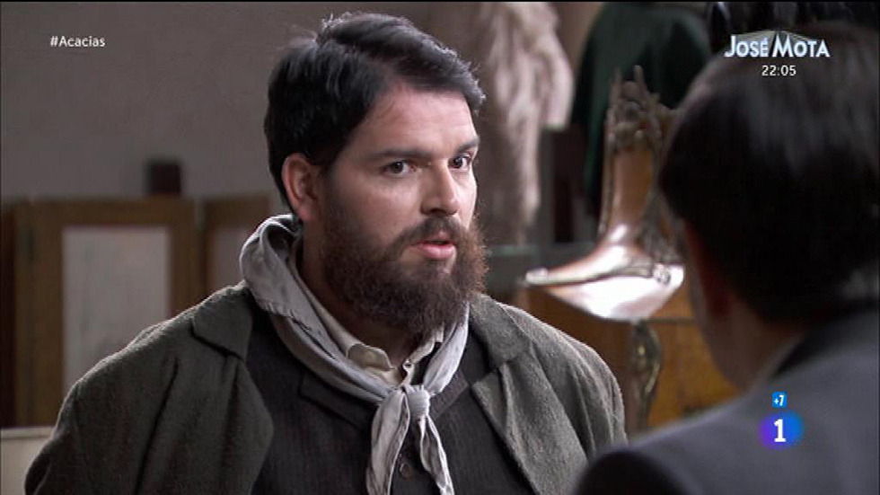 Un hombre muy extraño se asoma a la sastrería y le hace una seña a Martín, que deja a este con cara de preocupación.