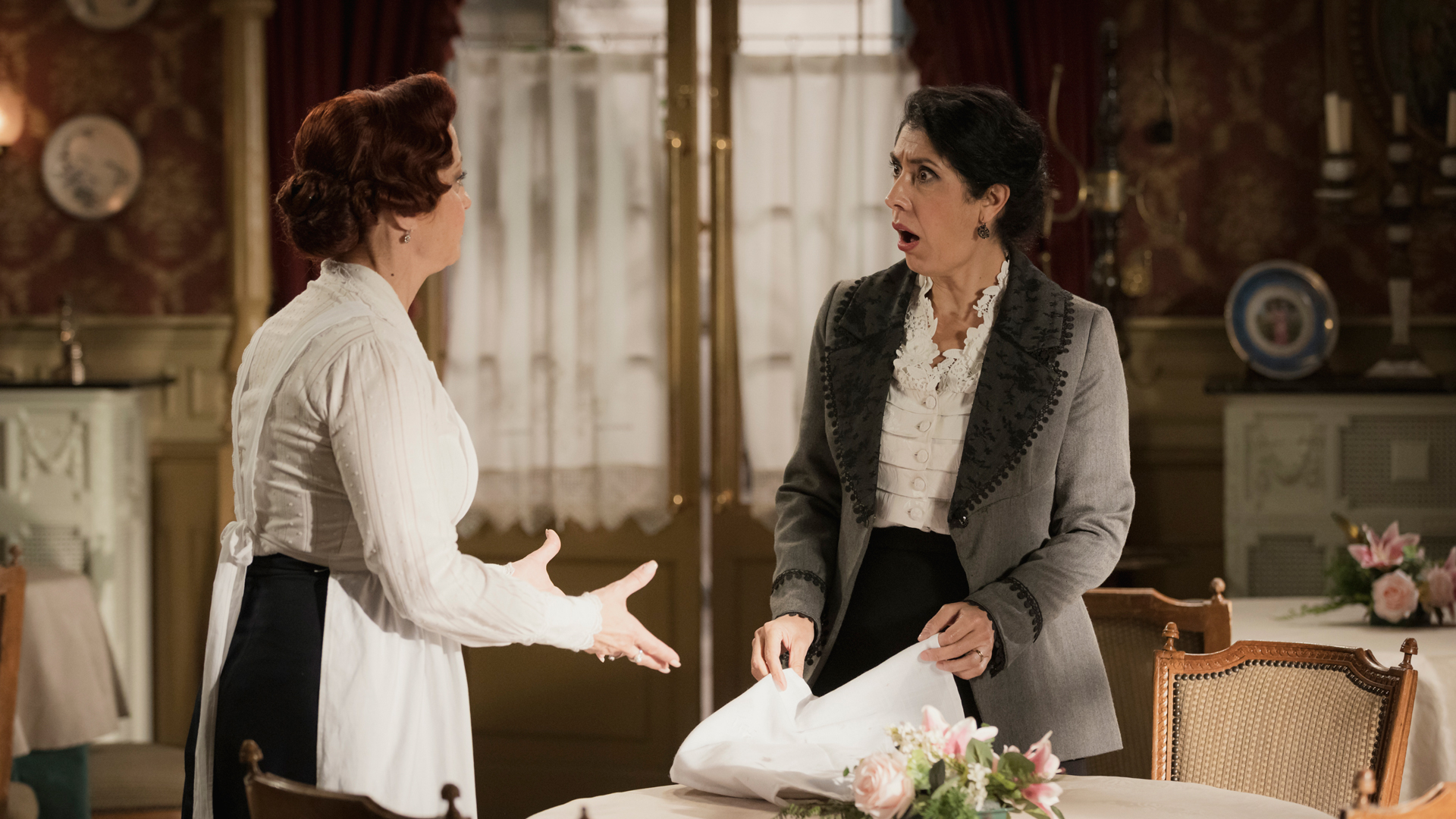 En el restaurante Nuevo Siglo XX, Rosina y Carmen siguen con sus desacuerdos a la hora de gestionar el local. Rosina quiere montar tertulias políticas para que acudan todos los prohombres del ateneo y diputados de las Cortes, pero Carmen no está muy convencida de la idea de su socia.