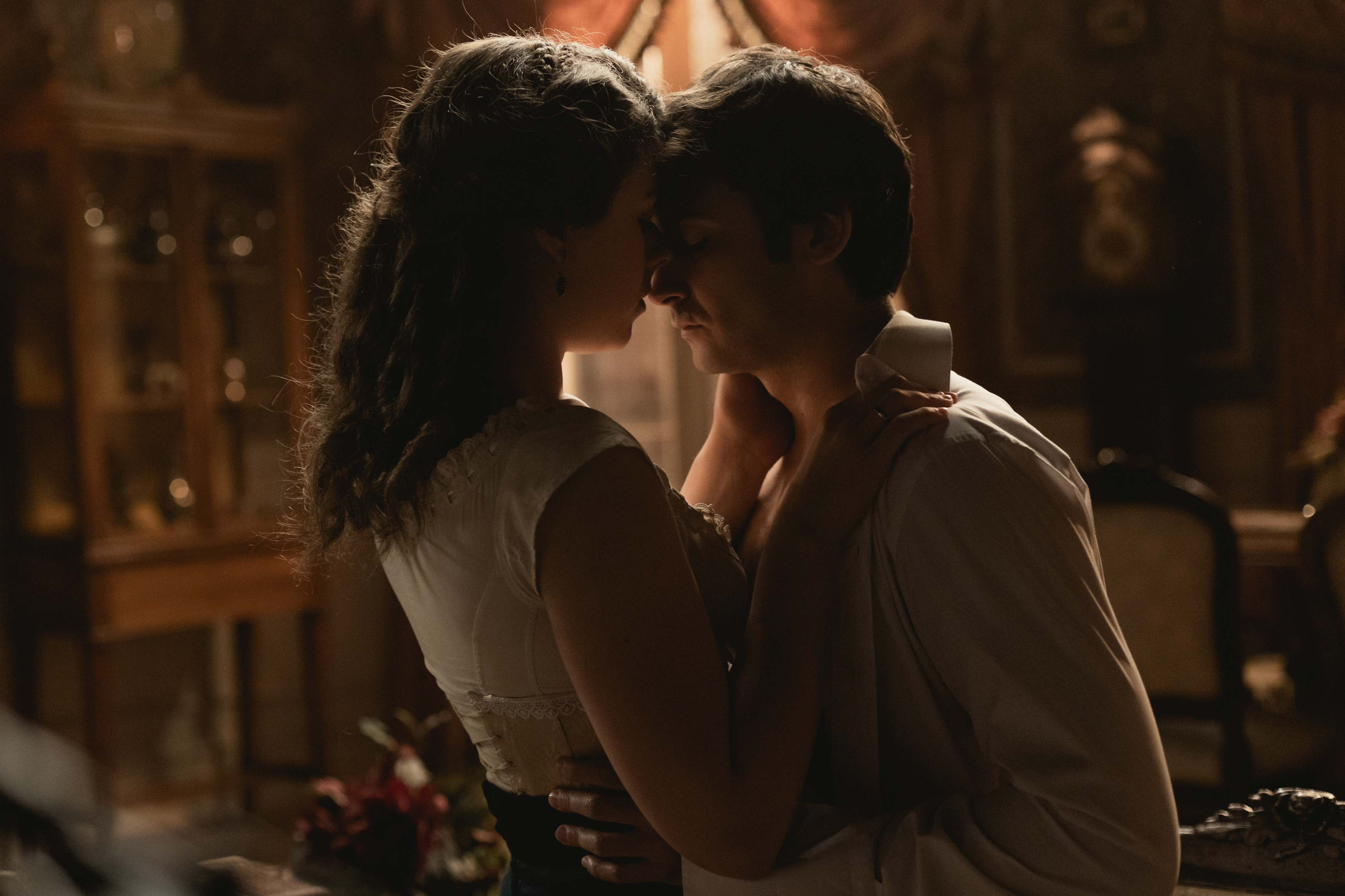 La criada pilla a Liberto besándose con Genoveva.