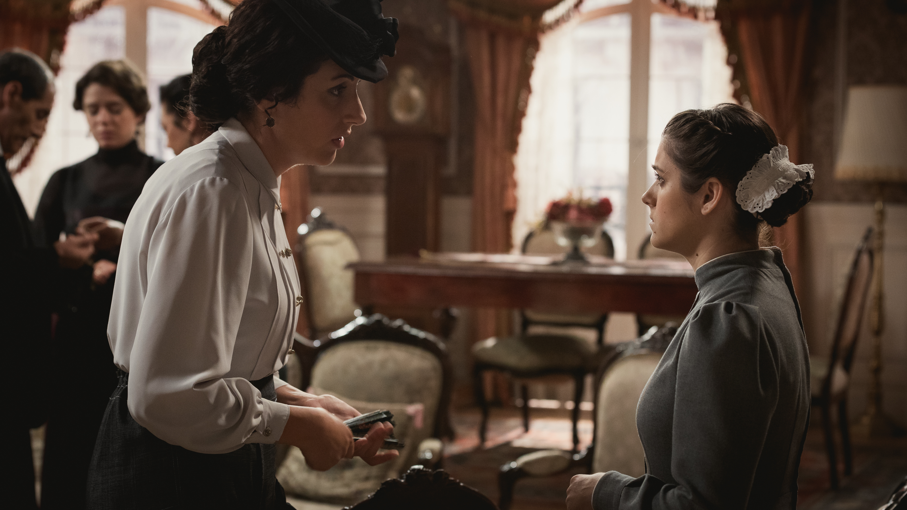 La señora ha organizado un rosario en casa para impresionar a Felipe.