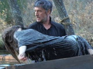 Con la ayuda de Águila Roja, Hernán consigue abrir la caja en la que estaba encerrada Lucrecia y sacar en brazos a su amada Marquesa. ¿Respira?...