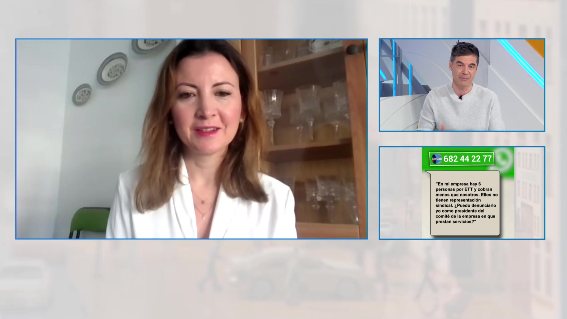 31/01/2023 00:25:58En esta edición de Aquí hay trabajo, la inspectora de Trabajo asesora a un espectador que trabaja en una empresa, en la que los seis empleados contratados por una ETT cobran menos y además, no tienen representación sindical. El experto en inmigración contesta a una espectadora, ya nacionalizada, que se quiere traer de Colombia a un hijo de 27 años. Tiene un negocio propio y le gustaría contratarle. En la agenda de becas, ayudas para formación sanitaria, becas de doctorado y ayudas para chicas que estudian Bachiller y Formación Profesional, Para quienes deseen opositar, 14.238 plazas docentes, 200 de personal de oficios y 246 vacantes repartidas entre las Cortes Generales, la Corporación Valenciana de Medios y los ayuntamientos de a Coruña y Málaga. Y, además 641 ofertas de empleo.