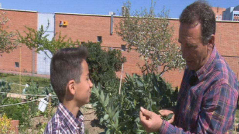 Jose Manuel y su hijo Samu plantaron en la huerta de Aquí la tierra habas hace unas semanas. Y ahora toca ver el resultado