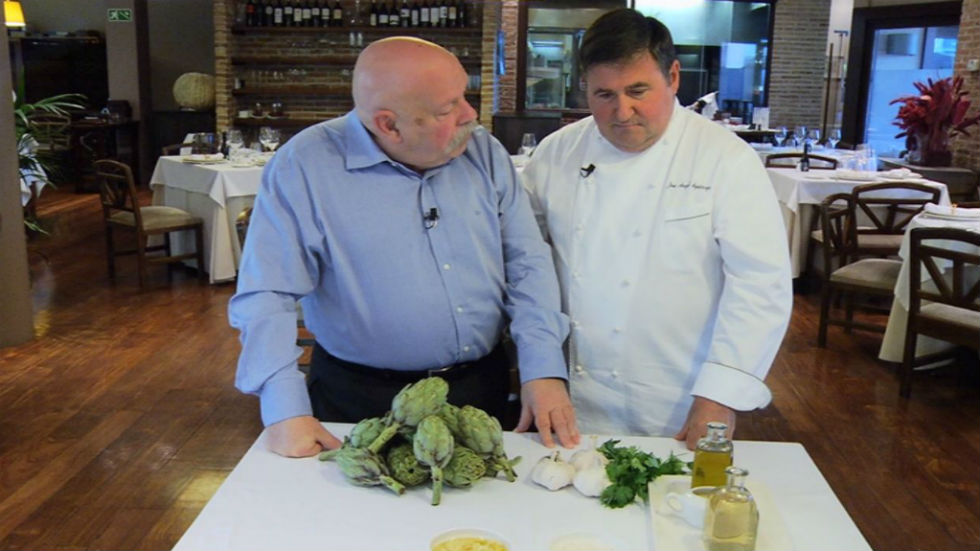 Dicen que la cocina es el arte de juntar en una misma cazuela alimentos que se lleven bien y el plato que se dispone a testar hoy Don José María Íñigo es un ejemplo del afortunado encuentro de dos elementos que no tienen nada que ver entre ellos, uno de tierra y otro de mar, pero que forman un tándem perfecto: las polivalentes alcachofas, y las espectaculares almejas. "Alcachofas con almejas".