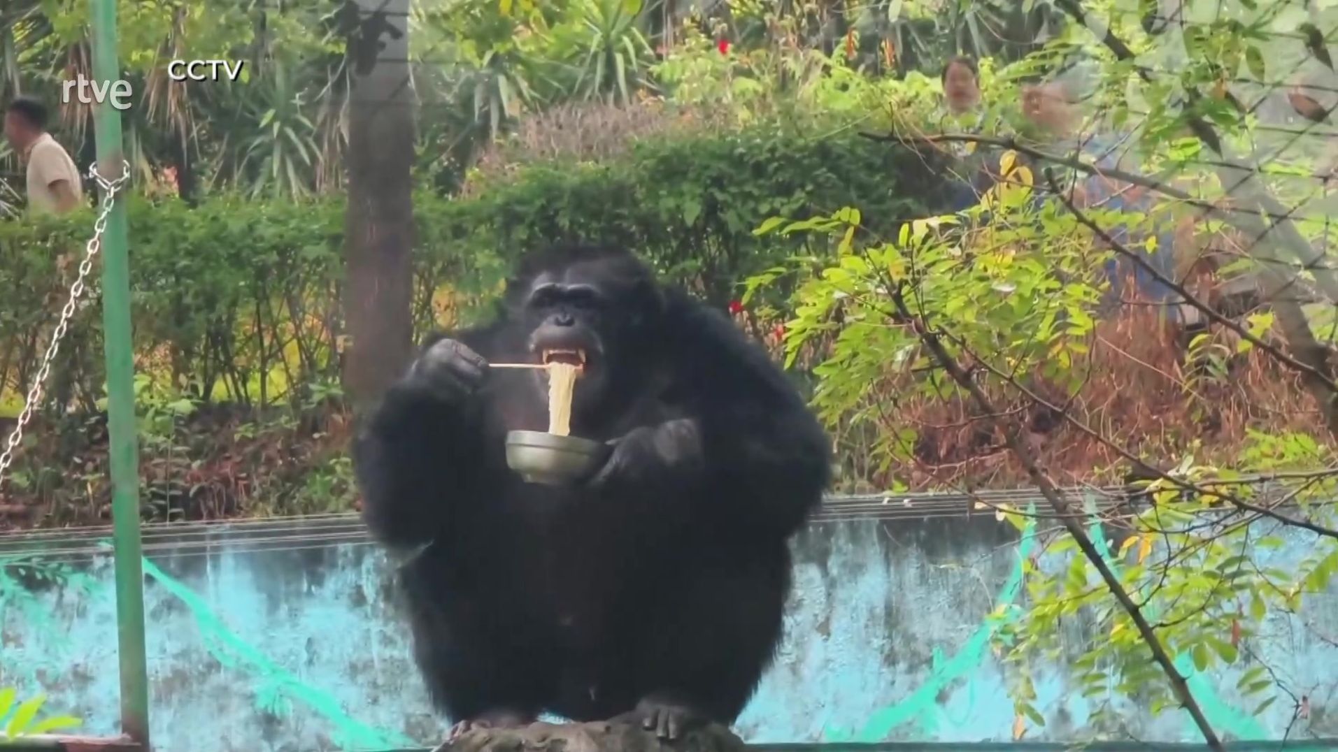 Chimpancé come noodles