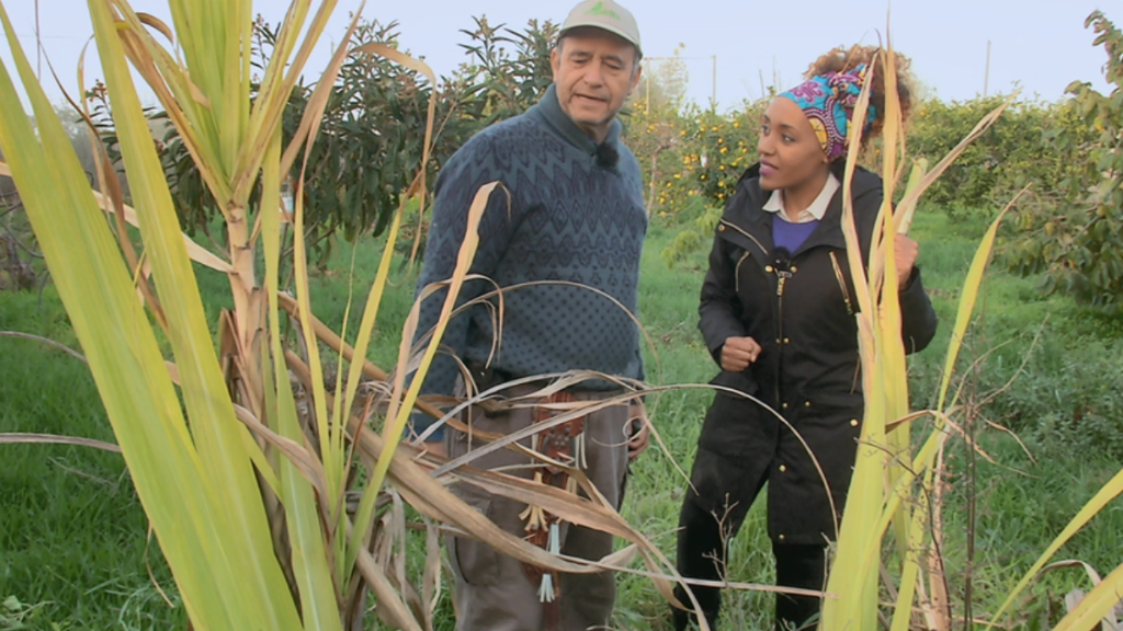 Se puede viajar alrededor de todo el mundo sin salir del campo de Cartagena porque allí, en sus fértiles tierras, crecen las frutas más exóticas, y las hortalizas más raras. En el huerto de Ramón Navia hemos visto cosas muy curiosas, hoy toca hablar de cañas de azúcar.