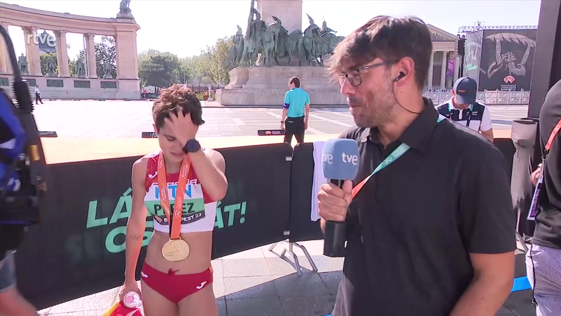 María Pérez, doble campeona del mundo de 20 km y 35 km marcha, atendió a TVE al terminar la carrera y comentó que "es un sueño hecho realidad". La...