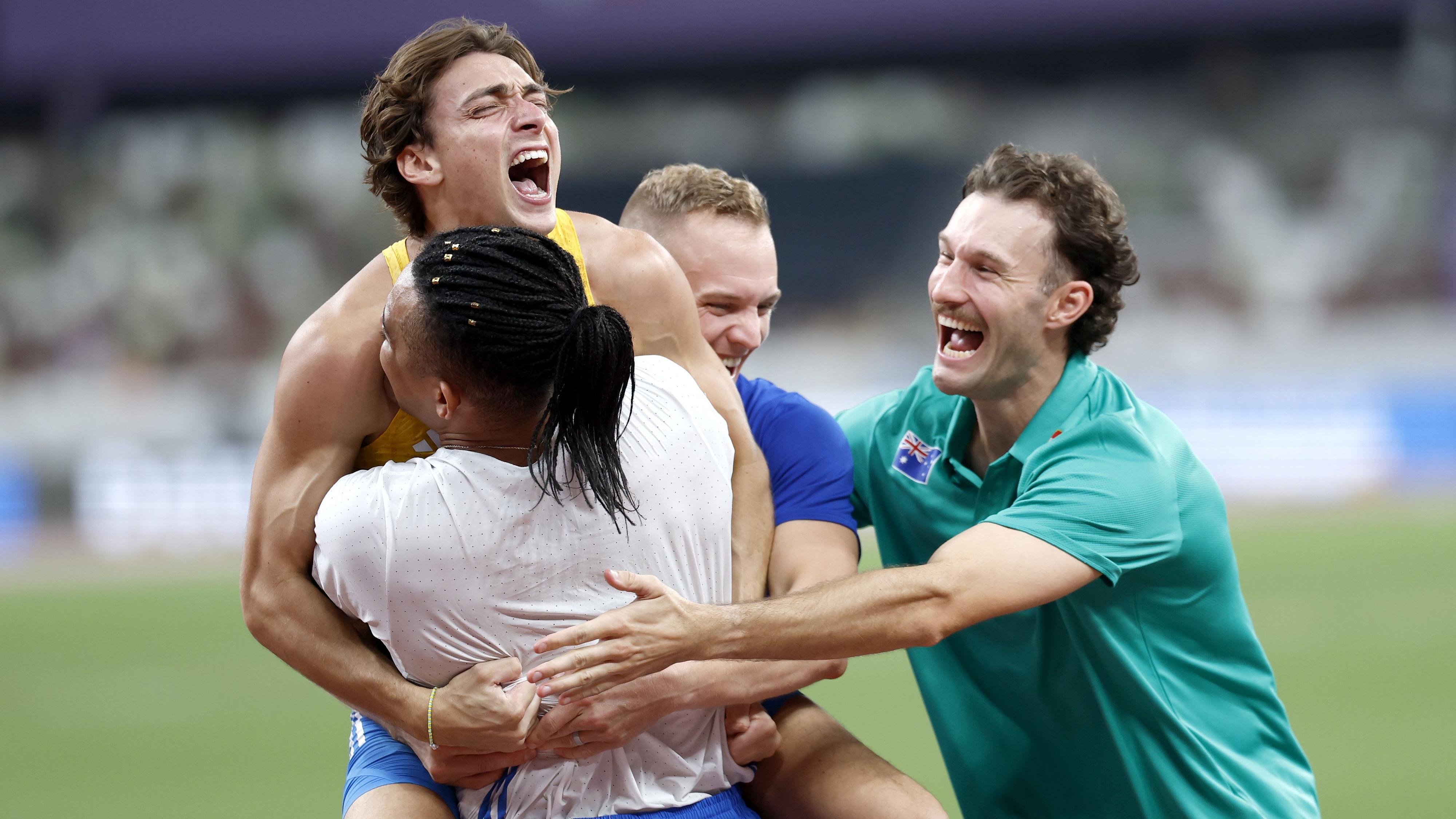 Duplantis bate el récord del mundo de salto con pértiga y sus rivales lo celebran con él