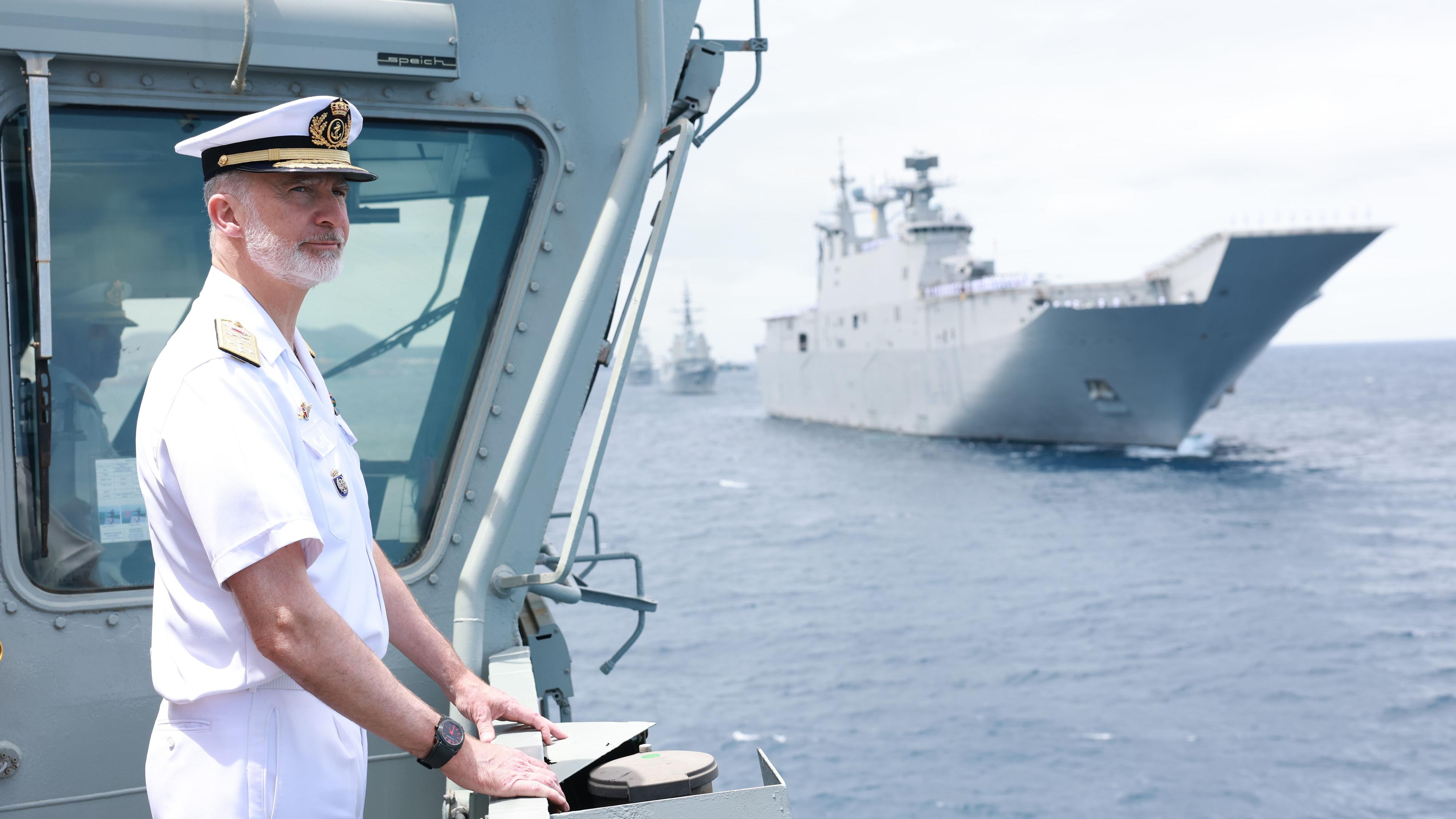 En Gran Canaria, el Rey embarcaba en el buque "Tornado" para la revista naval, luego se unía a la exhibición dinámica.