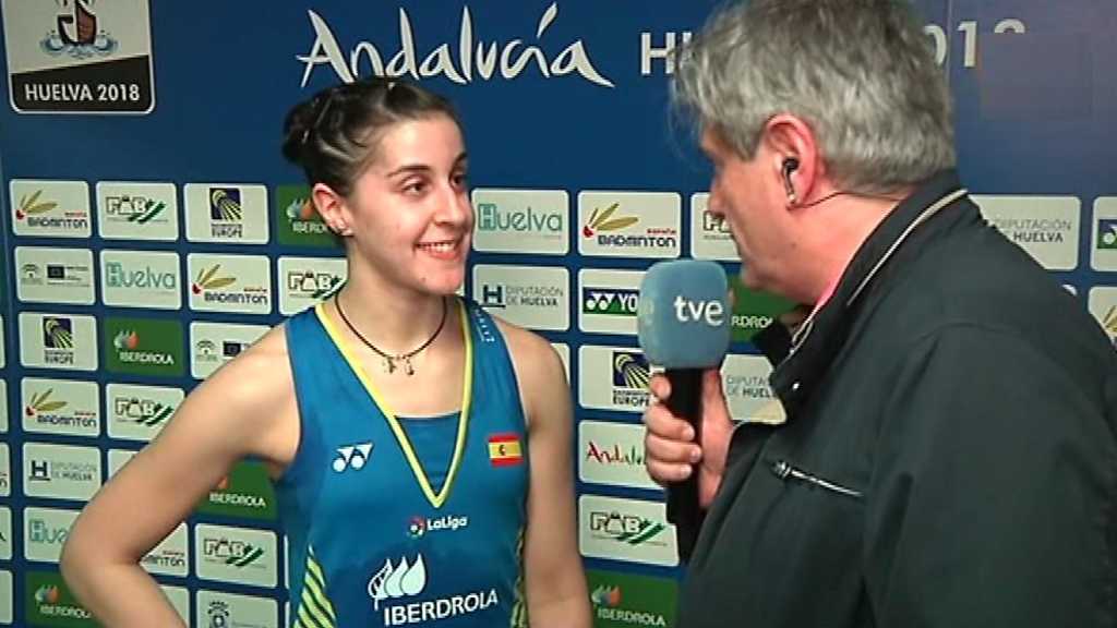 Entrevista a Carolina Marín tras su victoria en cuartos de final del Campeonato de Europa celebrado en Huelva.