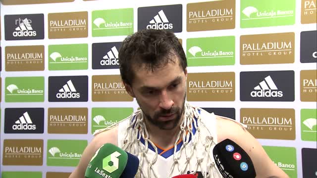 El capitán del Real Madrid, Rudy Fernández y Sergio Llull hablan en zona mixta del título número 36 de Liga conquistado por los madridistas en el...