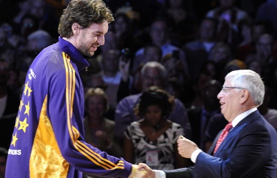 Pau Gasol ha recibido el anillo que le acredita como campeón de la NBA 2009 con Los Angeles Lakers en el estreno de su equipo (28/10/2009).