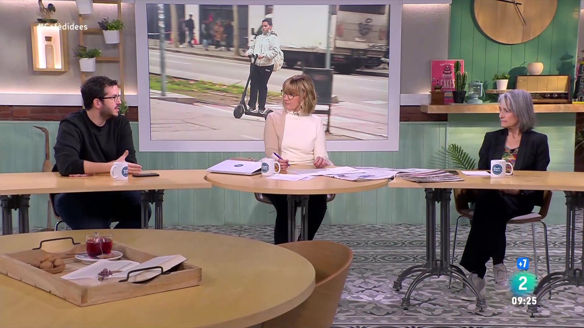 29/01/2025 01:55:26Al Cafè d'idees de Gemma Nierga fem tertúlia amb Manu Simarro i Montserrat Nebrera, analitzant l'actualitat catalana connectant amb Lluís Falgàs des del Parlament i des de Madrid amb Rodolfo Irago. Parlem amb Robert Raga, alcalde de Riba-roja de Túria, tres mesos després del pas de la Dana. Portem a taula el debat de l'habitatge amb Enric Aragonès, portaveu del Sindicat de Llogateres, i Sergi Llagostera, president de l'Associació de Propietaris de Catalunya. Connectem amb Ramon Rupérez per parlar de les novetats en l'ús del casc amb els patinets amb Andrià Gomila, director de serveis de mobilitat de l'Ajuntament de Barcelona. Coneixem la stiuació de les paparres a casa nostra amb Andreu Garcia, vicepresident i portaveu de l'Associació d'Empreses de Salut Ambiental de Catalunya (ADEPAP). I acabem el programa conversant amb la sommelier Meritxell Falgueras i l'Anne Cannan, fundadora de Mujeres del Vino, que impulsa el Premi Isabel Mijares.