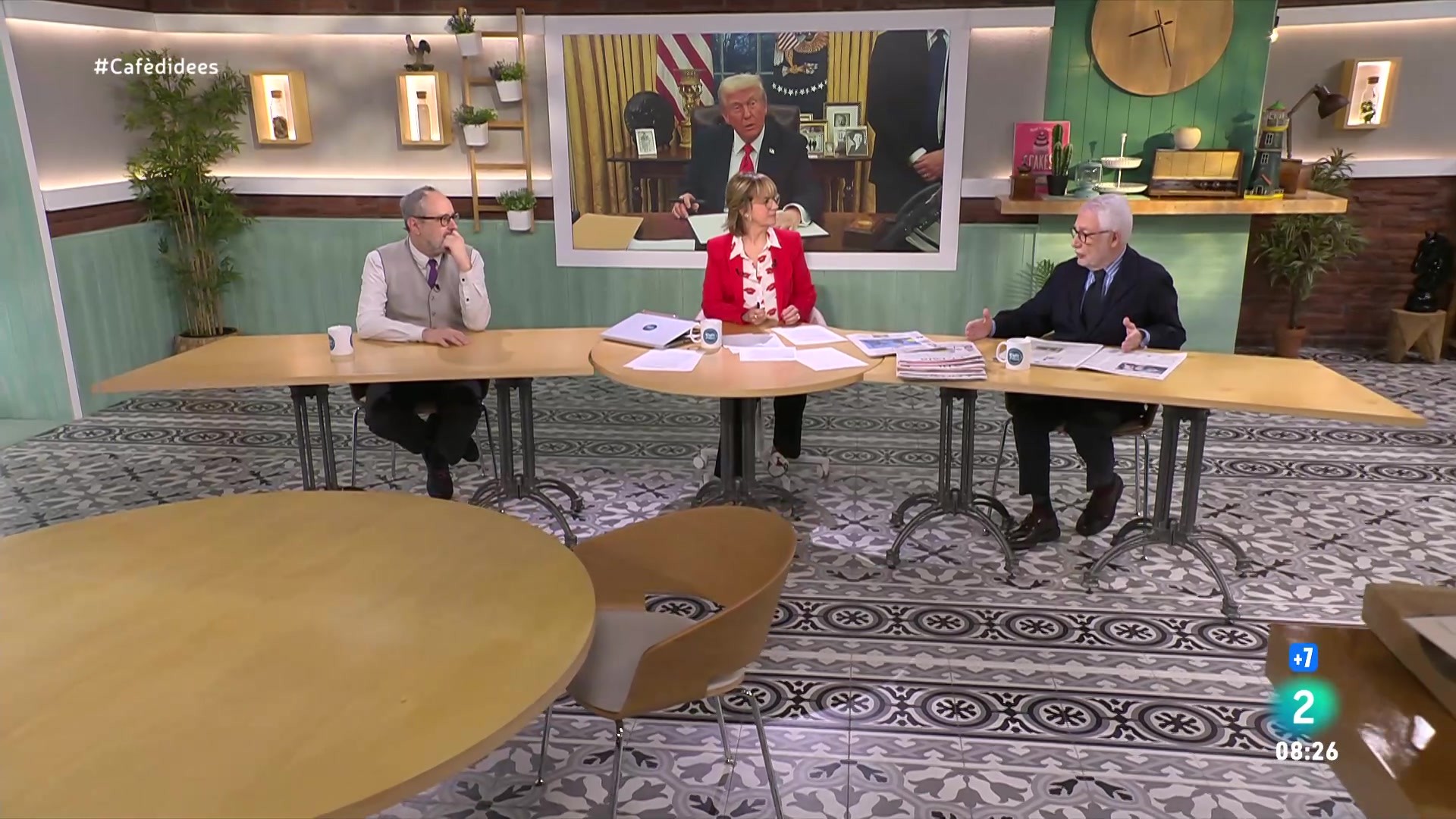 Gemma Nierga entrevista al Cafè d'idees a Joan Tardà, exportaveu del grup d'ERC al Congrés dels Diputats. A la tertúlia amb Antonio Baños i Ricard Fernández Déu, parlem dels 20 anys de YouTube amb el creador de contingut i periodista Roc Massaguer , conegut com Outconsumer, i amb Lluís Pastor, professor dels estudis de ciències de la informació i de la comunicació de la UOC. La xef i propietària del Semproniana de Barcelona Ada Parellada ens parla de carxofes a la seva secció Històries de bar. I acabem amb la secció de cine i sèries d'en Pep Prieto conversant amb l'actriu Laia Manzanares, que protagonista la sèrie de TVE Asuntos internos.