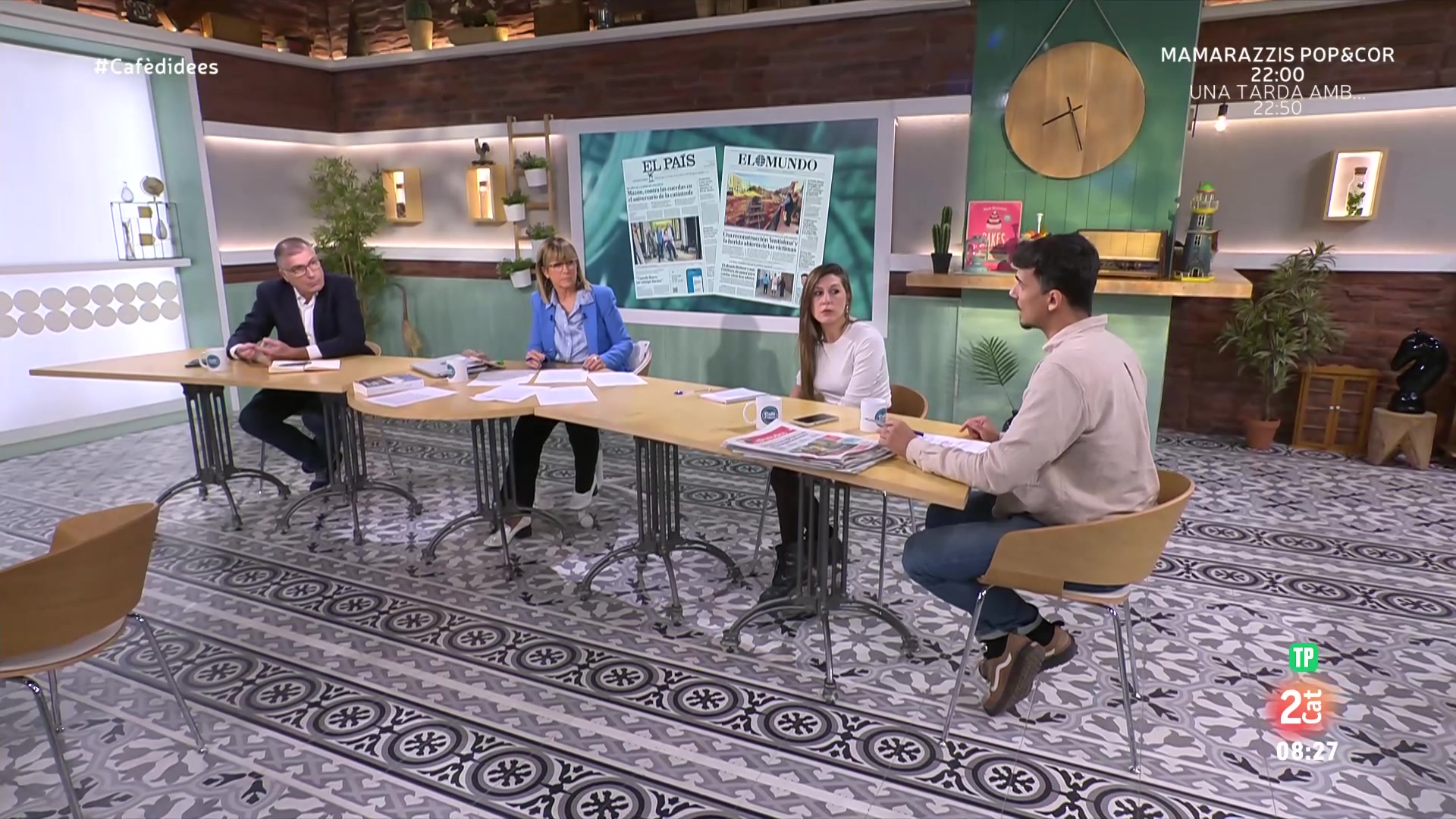 29/10/2025 02:43:19Gemma Nierga entrevista al Cafè d'idees a Pilar Bernabé, delegada del Govern d'Espanya a la Comunitat Valenciana. A la tertúlia amb Laura Aznar i Joan López Alegre, parlem amb Mariló Gradolí, portaveu de l'Associació Víctimes de la DANA 29 octubre 2024, coincidint amb l'aniversari de la gota freda, i també amb Vicent Ciscar, alcalde de Paiporta. Comentem l'actualitat des de Madrid amb Juan Fernández. Connectem amb Ofer Laszewicki Rubin, periodista català-israelià i excorreponsal a l'Orient Mitjà, per parlar de la Franja de Gaza. El periodista Antonio Pampliega, corresponsal de guerra, ens presenta el llibre Cowboys en el infierno. El músic Pablo Alborán ens presenta el seu darrer treball: KM0. I acabem amb la secció d'Ernest Riveras, on ens parla dels diners que mou l'NBA.