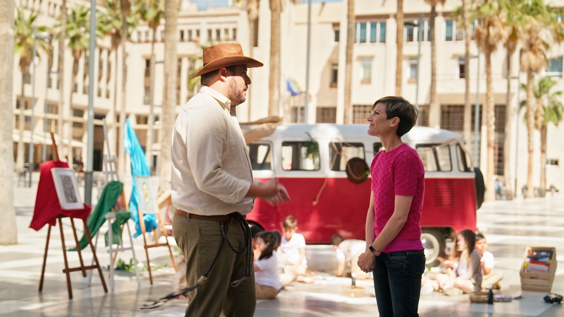 15/11/2025 00:30:50Sara Escudero conduce "Caravana Educativa" hasta la ciudad de El Ejido en Almería, donde conoce al maestro de infantil Alberto Padilla, más conocido en redes como @elmaestroalberto. En esta aventura educativa, las alumnas y alumnos del maestro Alberto inician un “viaje por el mundo” en el que, caracterizados como Indiana Jones, conocerán a varios artistas y experimentarán con algunas de sus técnicas de creación. Un viaje por la historia del arte que inician conociendo la música andalusí y realizando un pictograma de una nuba tradicional. Tras acercarse a su cultura más próxima, continuarán realizando un retrato de varios artistas contemporáneos, como Miró, Picasso y Van Gogh. Posteriormente contarán con la visita de un experto en patrimonio de la zona quien les mostrará algunas de las herramientas que nuestros antepasados utilizaban para trabajar con la arcilla. Y, para terminar, los alumnas y alumnos de Alberto inventarán un perfume dedicado a la Mona Lisa.