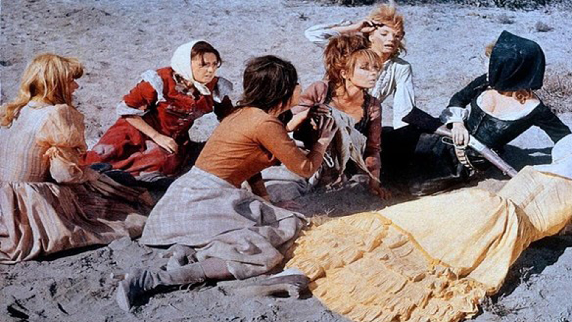 En 1850, en el desierto de Arizona, una caravana de colonos que desean llegar a un territorio civilizado, es atacada por los indios. Tan sólo siete mujeres, que se han escondido en una cueva, consiguen sobrevivir. Sin víveres, sin carretas, ni caballos, las mujeres deben llegar al fuerte más cercano. Mary Ann, toma el mando del grupo de mujeres, debiendo cruzar el desierto. Ellas sufren varios ataques de los indios, pero logran salvarse finalmente resguardándose en una cueva que les lleva a un cementerio indio, donde éstos al ser terrero sagrado no las pueden atacar. Están ya muy cerca del Fuerte Lafayette, pero los indios les vuelven a atacar.