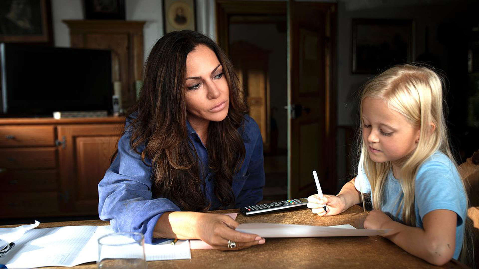 Katja Baumann, asistente social, cuida de una niña mientras sus padres atienden a su hermano mellizo, hospitalizado tras un accidente.