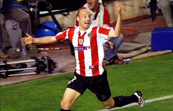 El Athletic de Bilbao se adelanta en el marcador con un cabezazo de Toquero a la salida de un córner en el minuto 10 (13/05/09).