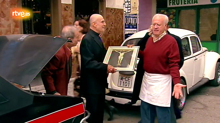 Los vecinos del barrio ayudan a Miguel a montar la "oficina efímera" de la cooperativa Estandartes y Banderas. Incluso el padre Froilán, que quiere...