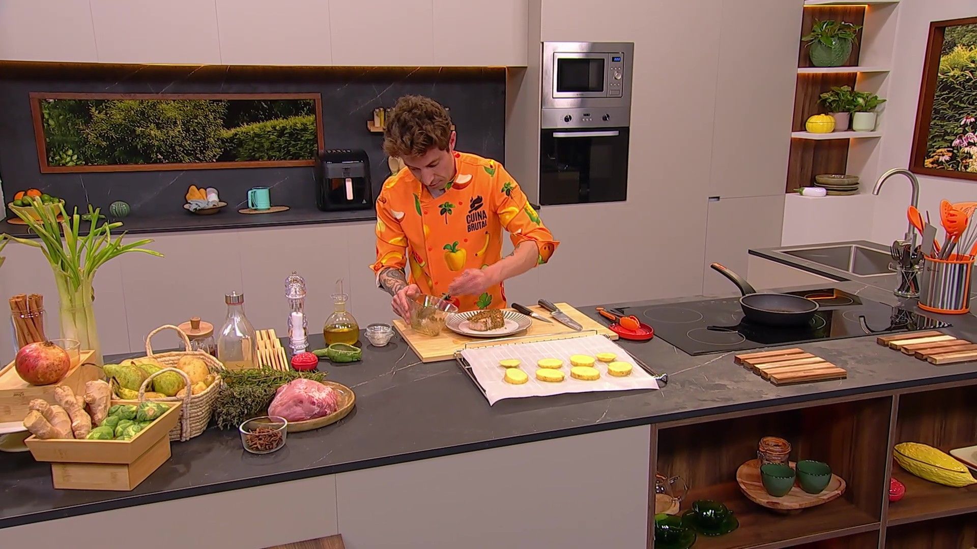 Cols de Brussel·les cruixents, lloms de porc amb crosta de mostassa i peres calentes amb crema d’ametlla amb el Chef Bosquet.