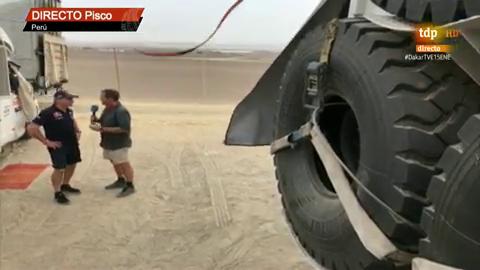 El piloto español se quedó sin dirección asistida a 230 km de terminar la etapa, cuando se quedó atascado en una duna. Finalmente, Sainz pudo...