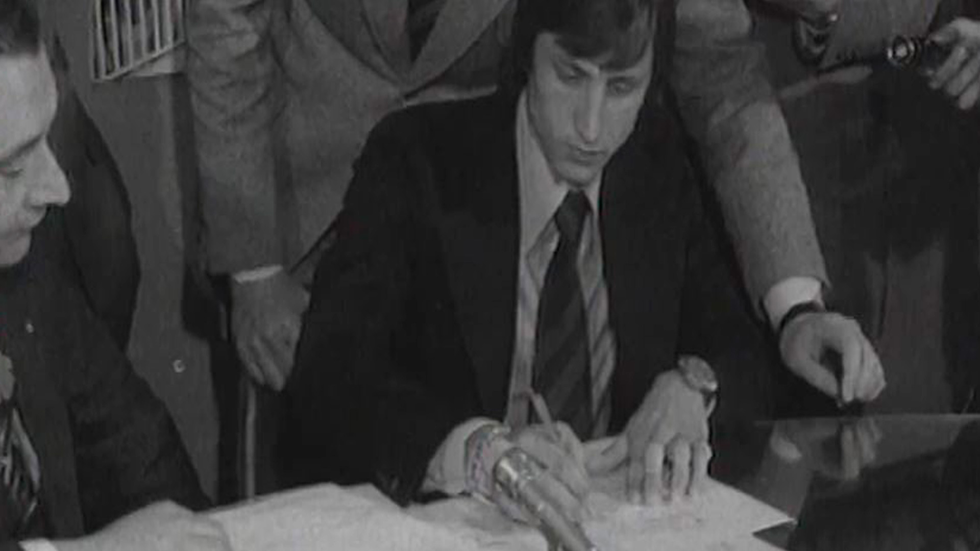Reportaje sobre Johan Cruyff realizado con imágenes de archivo: jugando en el Ajax, fichado por el FC Barcelona, con la selección holandesa y su...