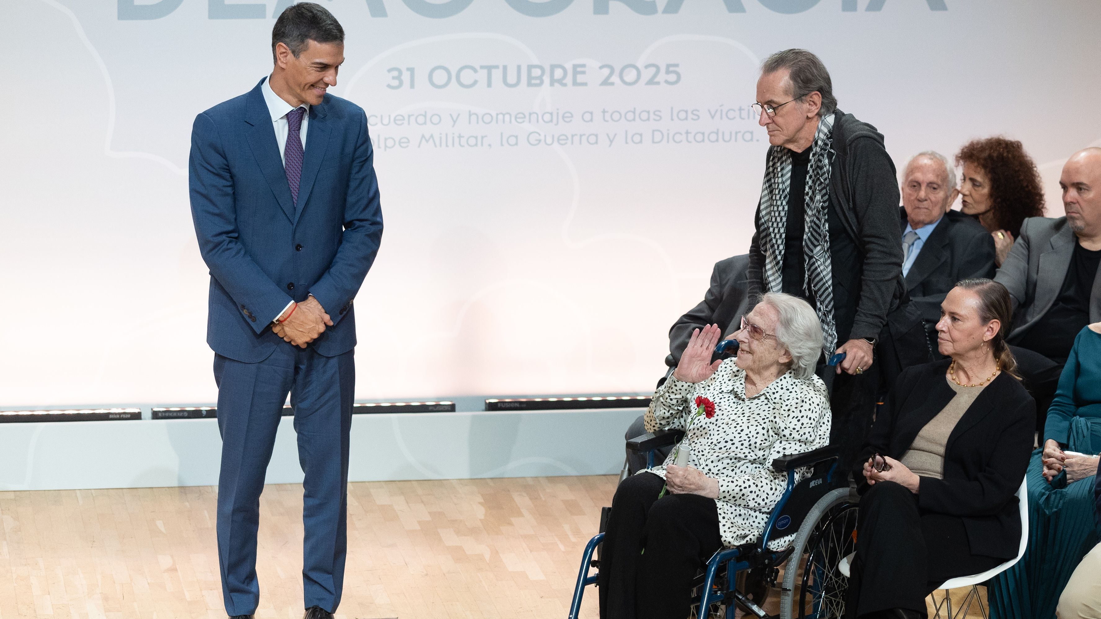 El presidente del Gobierno, Pedro Sánchez, ha presidido este viernes un acto donde el Ejecutivo ha rendido homenaje a una veintena de víctimas de la...