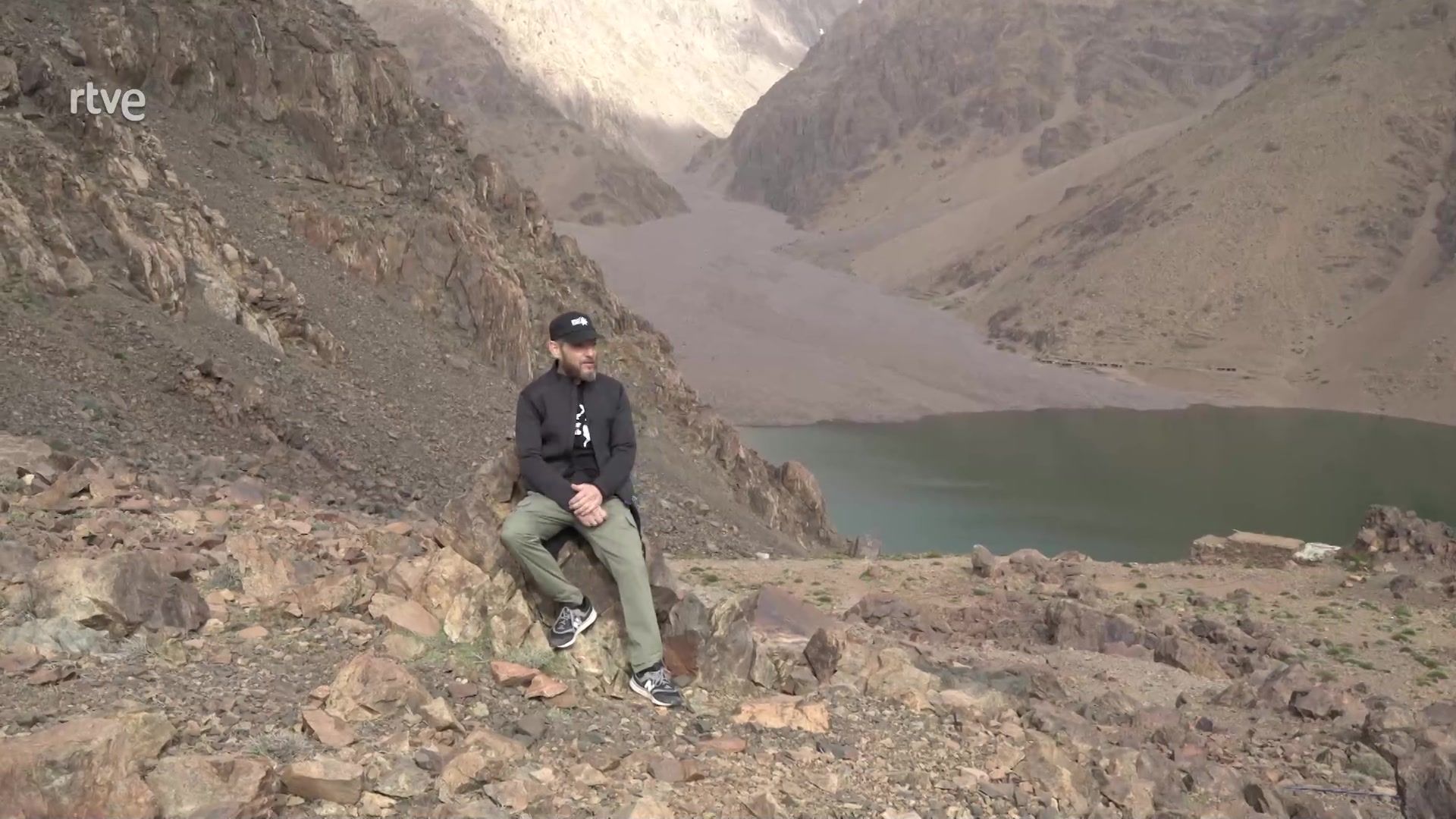 Miquel Silvestre tiene que dejar la moto por ahora. Para subir hasta el lago Ifni hay que ir a pie por una escarpada senda de piedras durante 3 km.