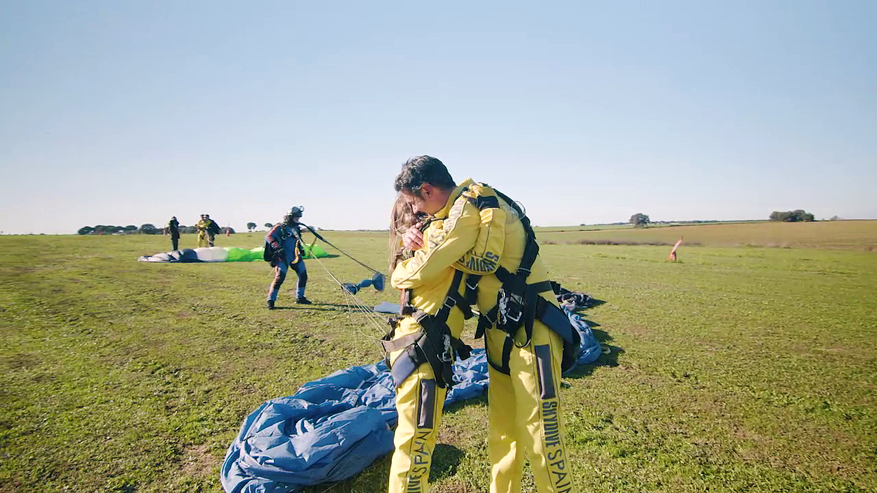 Perico, Jesulín y María José Campanario saltan en paracaídas